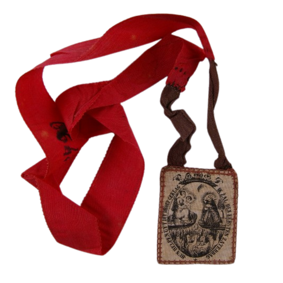 Florimondus Enor werd gevonden op 14 november 1858 en ingeschreven in de registers van de vondelingen onder het nummer 6642. Een herkenningsteken is bewaard: een scapulier met rood lint. In de dertiende eeuw is de devotie van het scapulier ontstaan. Volgens de overlevering heeft Maria het scapulier gegeven aan enkele grote Mariavereerders, waaronder de karmelier Simon Stock. Aan deze heilige belooft Maria dat wie het devoot draagt niet in de hel zal komen. Aan paus Johannes XXII belooft Ze dat ieder die het draagt bovendien de eerste zaterdag na zijn dood uit het vagevuur zal gered worden. Het scapulier geeft een diepe verbondenheid met Maria. Het is een teken van toewijding aan haar. En het geeft bescherming van de kant van Maria. µ