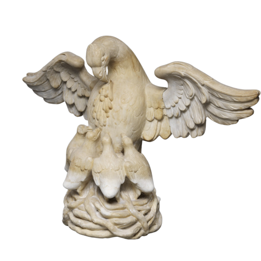 Een pelikaan die in haar borst prikt om haar jongen met haar bloed te voeden: in de katholieke cultuur is het sinds eeuwen een populair symbool van zelfopoffering, liefdadigheid, en hulp aan anderen, naar het voorbeeld van Christus die zich ook opofferde.