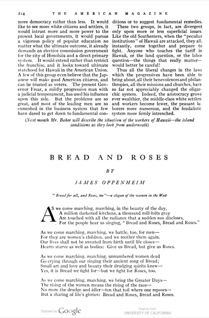 3. James OPPENHEIM, Bread and roses. In: The American Magazine, 1911, p. 214.