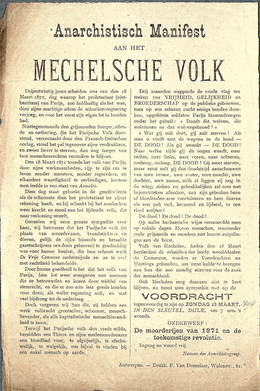 Anarchistisch Manifest aan het Mechelsche Volk